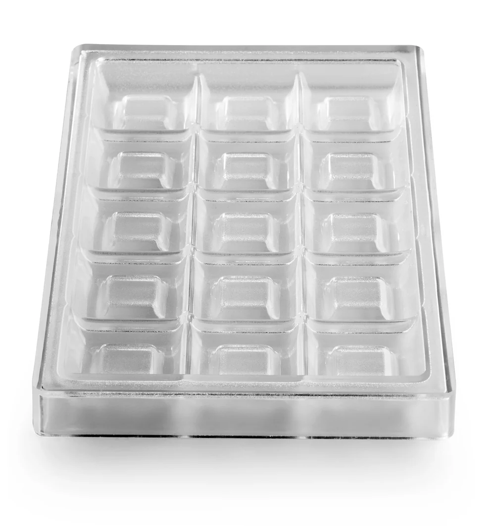 Fabricată din policarbonat alimentar BPA free, forma este rezistentă, durabilă și asigură o demulare rapidă și precisă. Oferă ciocolatei un luciu perfect și margini bine definite, ideale pentru a impresiona clienții sau invitații.