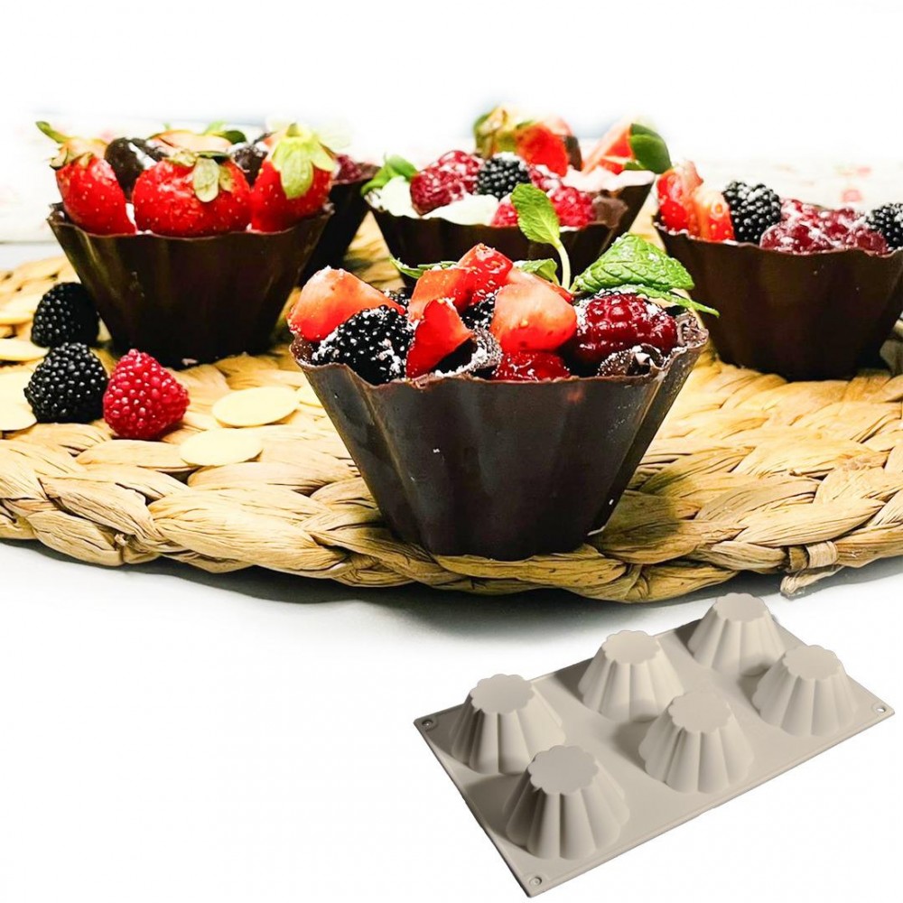 Forma din silicon 6 cavități – brioșe este ideală pentru coacerea uniformă a brioșelor, prăjiturilor, eclerelor, muffins-urilor și altor produse dulci sau sărate.