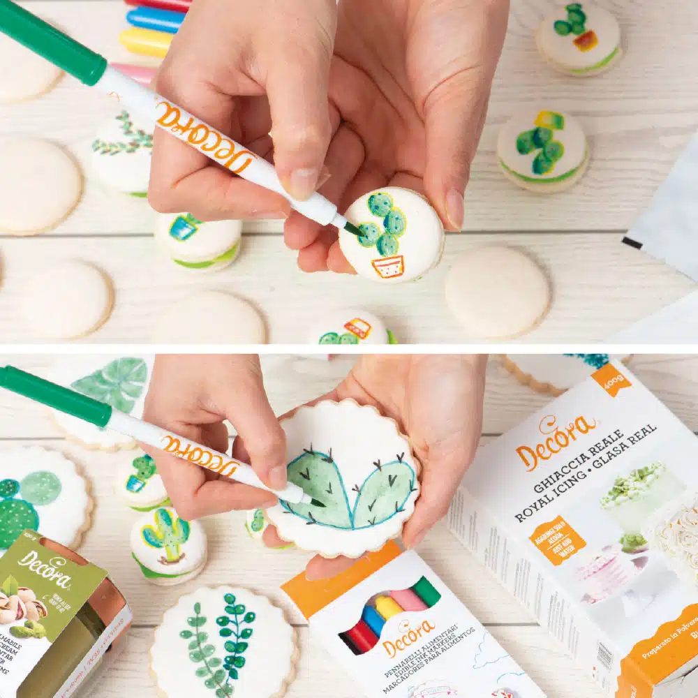 Setul conține 6 carioci comestibile, ideale pentru decorarea torturilor, biscuiților, confetti și altor deserturi. Culorile incluse: negru, verde, roz, albastru, roșu și galben. Realizate cu coloranți naturali, produsele sunt gluten free și sigure pentru utilizare în cofetărie.