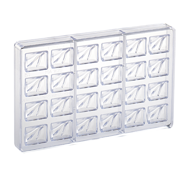 Forma din policarbonat Martellato este o matriță profesională pentru praline din ciocolată, cu design dreptunghiular ondulat, ideală pentru cofetării, patiserii și producție HoReCa. Asigură detalii precise și un finisaj elegant al pralinei.