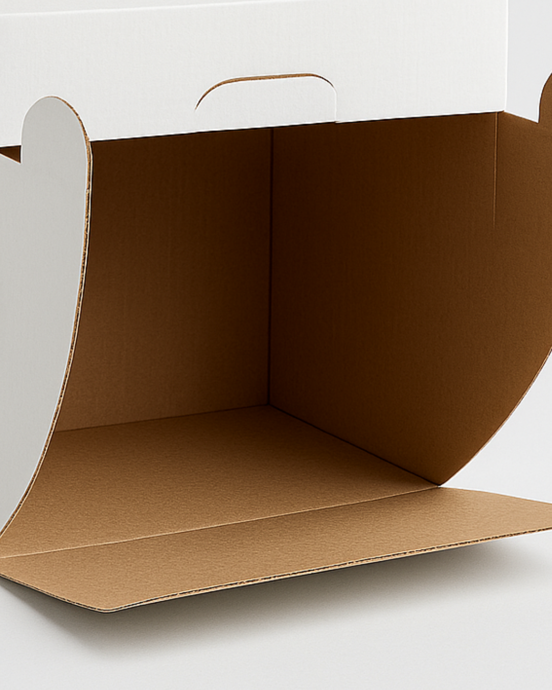 Cutie profesională din carton ondulat foarte rigid, ideală pentru transportul torturilor și deserturilor de până la 5–7 kg. Vine pliată și se asamblează rapid, fără adezivi.
