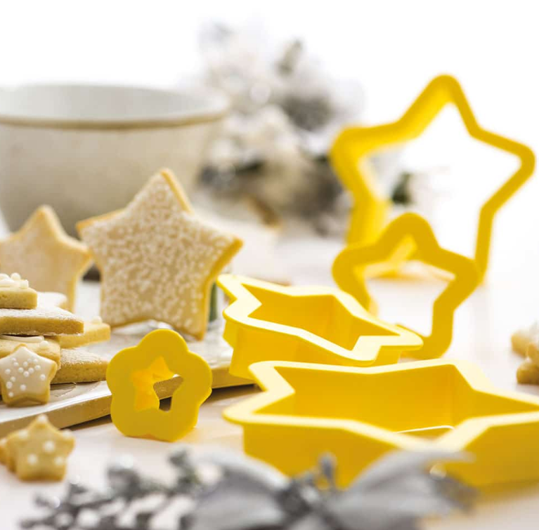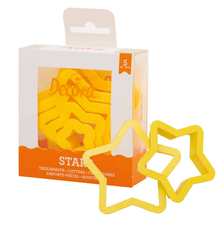 Setul de decupatoare din plastic 5 STAR este ideal pentru realizarea biscuiților și deserturilor în formă de stea. Cu dimensiuni variate, este perfect pentru aluat, fondant sau ciocolată.