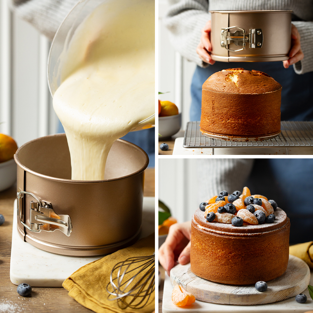 Designul său practic include sistem de închidere cu fermoar (springform), ceea ce permite o demulare rapidă și precisă fără a deteriora prăjitura. Suprafața antiaderentă facilitează utilizarea și curățarea, fiind ideală pentru torturi, cheesecake, pandișpan sau produse de patiserie fine.