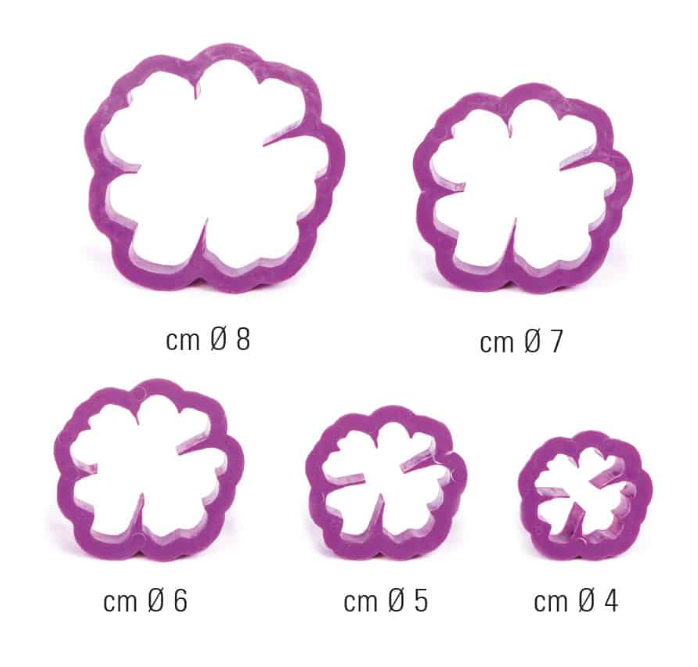 Acest set include 5 decupatoare din plastic, ideale pentru realizarea trandafirilor sălbatici în diverse dimensiuni. Fiecare decupator permite obținerea de flori detaliate și precise, perfecte pentru decorarea prăjiturilor, torturilor și deserturilor sofisticate.