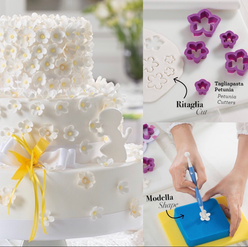 Decupatoare Petunia, set 5 buc - ideale pentru flori din fondant, pastă de zahăr sau marțipan. Setul include 5 dimensiuni pentru decoruri elegante de torturi și prăjituri.