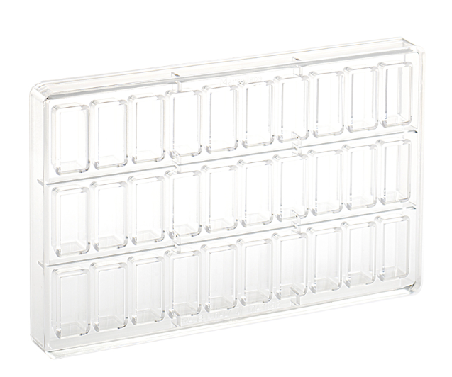 Creează praline elegante și uniforme cu matrița profesională din policarbonat. Concepută pentru cofetari și ciocolatieri, această formă combină designul clasic cu funcționalitatea modernă, fiind ideală atât pentru producția artizanală, cât și pentru cea profesională.